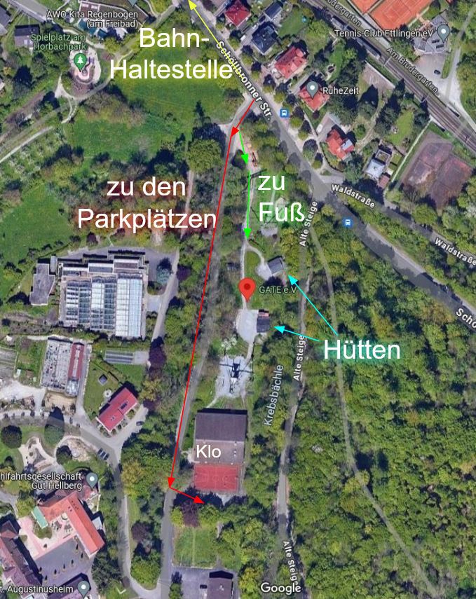 • Bei Starkregen/Gewitter: Halle auf dem Gelände •